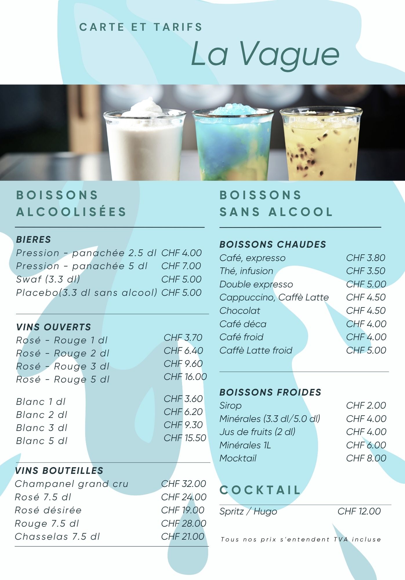 La Cafétéria La Vague est située dans l'enceinte de la Piscine des Chavannes et est ouverte à tous.
