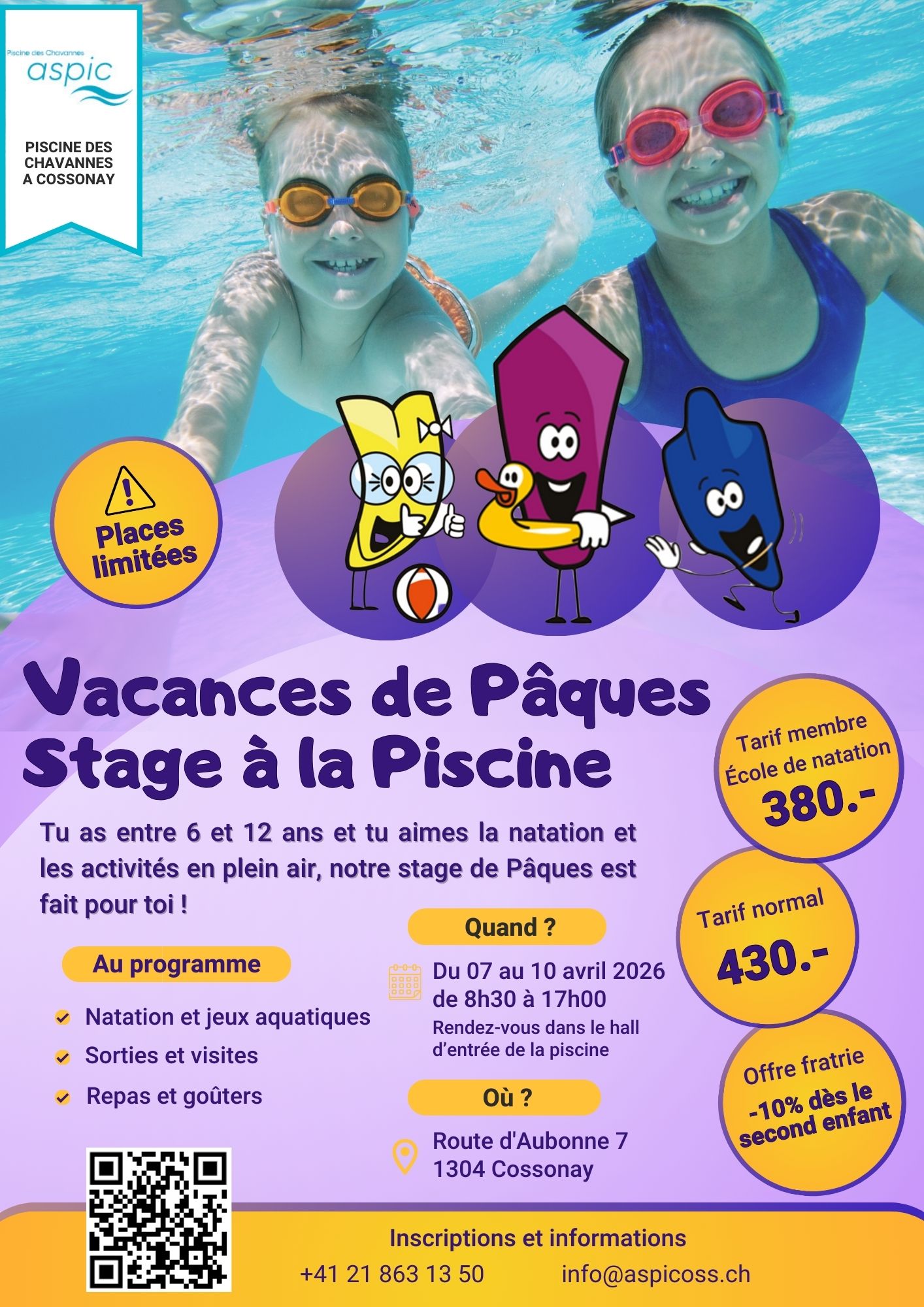 Plus d'informations par mail à info@aspicoss.ch ou par téléphone au 021 863 13 50.